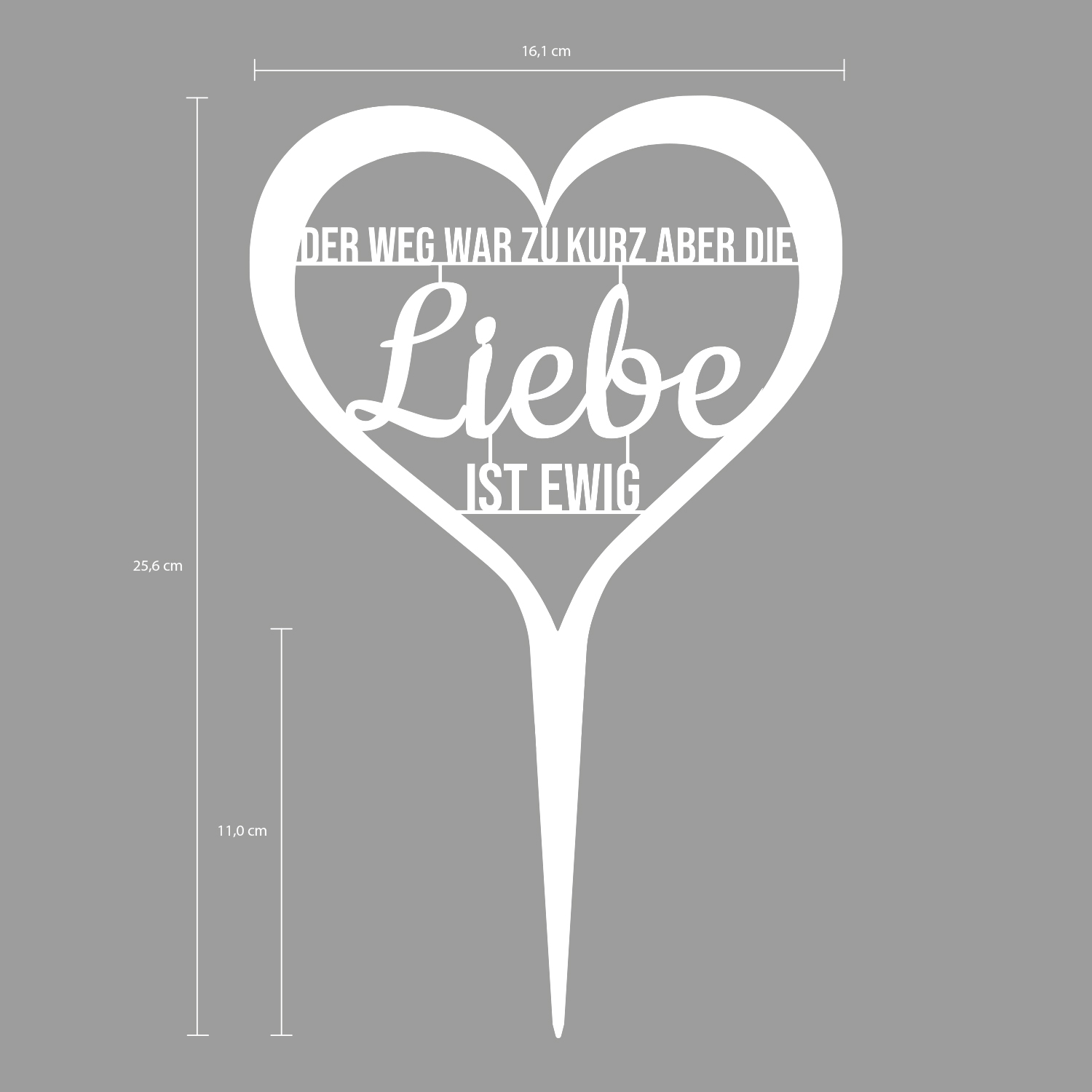 Grabstecker Grabschmuck "Der Weg war zu kurz aber die Liebe ist ewig" weiß pulverbeschichtet