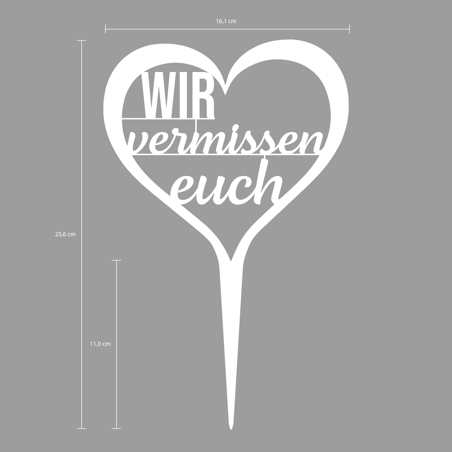 Grabstecker Grabschmuck "Wir vermissen euch" weiß pulverbeschichtet